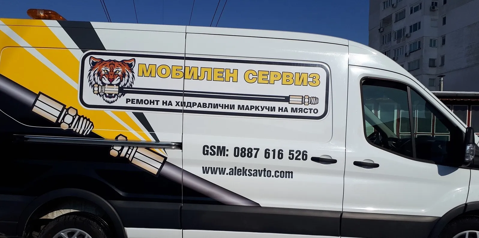 – Фирмата разполага с 3бр. мобилни работилници, оборудвани с машини за запресоване на маркучи с диаметър до 1“1/4 с 4 оплетки